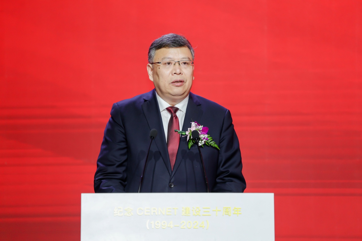 吴岩充分肯定了三十年来CERNET的发展成效,指出CERNET坚持服务教育科研,成为支撑国家教育现代化和科技创新的重要基石;坚持自主创新,成为国家互联网核心技术创新的重要策源地;致力人才培养,成为国家互联网创新人才培养的沃土;创新体制机制,开创高校科技产业融合新模式;深化国际交流合作,为构建网络空间命运共同体积极贡献力量。吴岩强调,世界百年未有之大变局正在全方位、深层次加速演进,我们迎来“智慧教育元年”,我国教育发展面临新形势、新任务、新机遇、新挑战。他对CERNET未来发展提出了四点希望:一是要坚持正确政治方向,服务国家重大战略需求,为赋能新质生产力、推动高质量发展提供有力支撑。二是要坚持创新驱动发展,聚焦与人工智能的交叉融合,加强产学研用深度融合。加强网络安全技术研究,提升网络安全防护能力,筑牢国家网络安全屏障。三是要全面服务国家教育数字化战略,为教育高质量发展提供有力支撑。四是要坚持开放合作,为推动全球教育事业发展贡献中国经验、中国模式、中国力量。