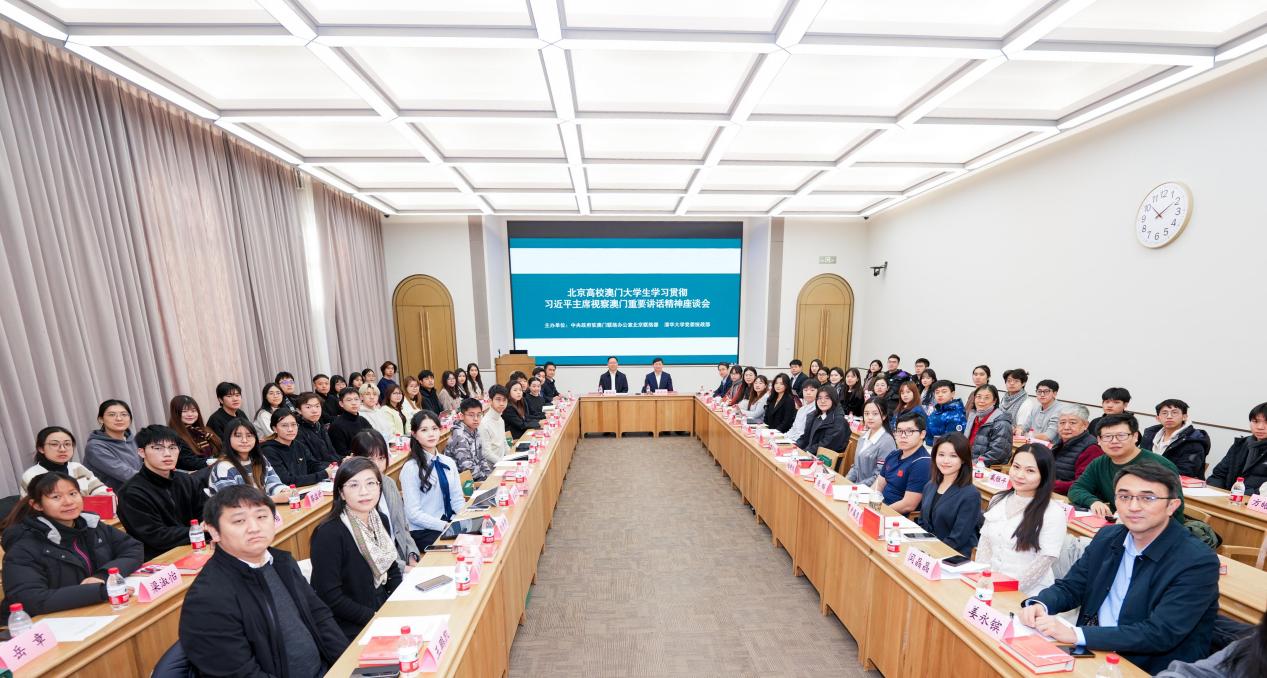 本次座谈会由中央政府驻澳门联络办公室北京联络部与beat365官方唯一入口党委统战部共同主办。清华师生代表26人参加会议,党委统战部、党委研工部、校团委、港澳台办相关负责人参加会议。