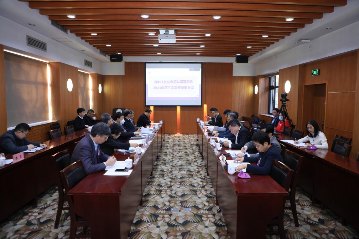 清华新闻网1月5日电 12月28日上午,清华校友总会第九届理事会2024年第三次常务理事会议在甲所第三会议室召开。校长、校友总会会长李路明主持会议,校党委常务副书记向波涛,校友总会副会长姜胜耀,校务委员会副主任、校友总会副会长史宗恺,校友总会副会长韩景阳,校务委员会副主任、校友总会副会长吉俊民、王岩等出席会议。