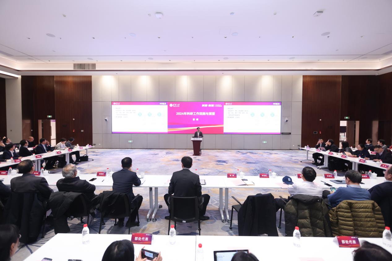 曾嵘以“建设大学创新体系,支撑科技强国建设”为题作工作报告。他回顾了学校2024年在推动基础研究高质量发展、扎实推进关键核心技术攻关、以高水平开放合作推动全球科技进步、搭建高水平创新人才汇聚平台、繁荣发展人文社会科学等方面的工作成果,并对2025年在完善基础研究支持与成果评价机制,优化重大科技创新组织机制,推进文科建设等方面将开展的工作提出了展望。