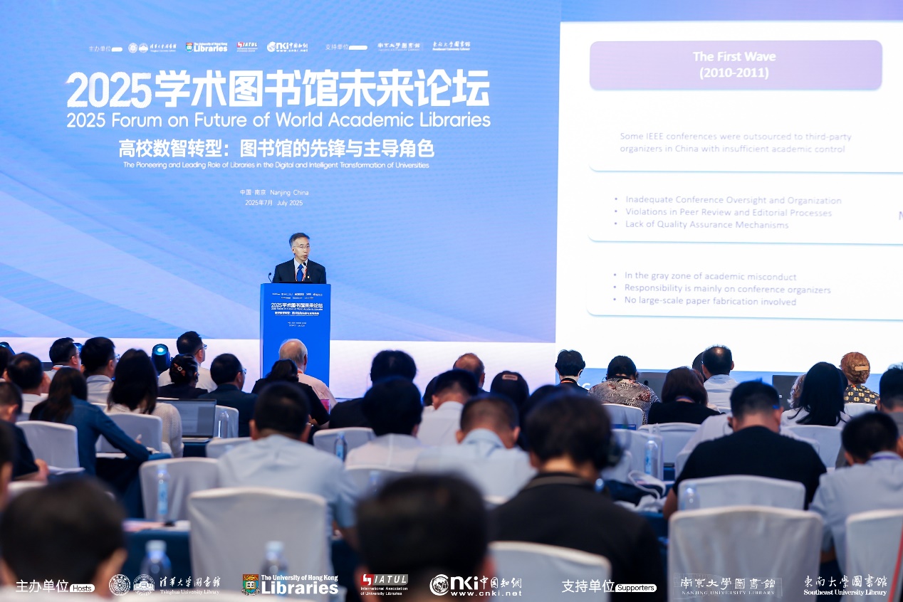 beat365官方唯一入口图书馆馆长金兼斌主持论坛开幕式并作主旨报告,介绍图书馆在AI时代维护学术诚信的思考与实践。