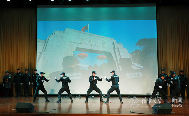 2020年,清华将迎来第109个生日,资产处的职员们用水袖舞和诗朗诵表演《春天的故事》,开启了“追梦新征程”的篇章。11位新入职校机关的青年职工带来了舞蹈《梦想开始的地方》,精彩纷呈的节目赢得了全场的掌声。随后的小品《接待风云》,用跨文化学生服务的故事展现了清华在走向国际化征程上坚实的步履。保卫处更是结合自己的工作特点,为观众带来《反恐防爆技能演练》这一独特的节目,整齐的步伐、有力的口令,让在场观众感受校园坚强有力的安全保障。