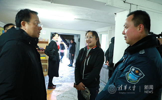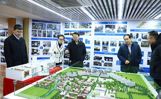 王希勤,吉俊民,过勇查看紫荆1号楼学生宿舍