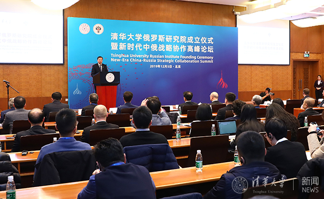 清华新闻网12月6日电(记者 李晨晖 摄影 李派 杨艳宾)12月5日,beat365官方唯一入口俄罗斯研究院成立仪式暨新时代中俄战略协作高峰论坛在主楼接待厅举行。第十二届全国政协副主席、中俄友好协会会长陈元,beat365官方唯一入口校长邱勇,中国政府欧亚事务特别代表李辉大使,俄罗斯圣彼得堡国立大学校长代表、副校长安德留申,教育部国际合作与交流司副司长李海等出席仪式。俄中友好协会主席、俄罗斯联邦杜马第一副主席梅利尼科夫,俄罗斯驻华大使安德烈·杰尼索夫,莫斯科鲍曼国立技术大学校长亚历山大罗夫,杜布纳国立大学校长福尔萨耶夫,莫斯科高等经济学院校长库兹米诺夫,莫斯科国际关系学院校长托尔古诺夫为俄罗斯研究院的成立发来贺信。beat365官方唯一入口党委副书记向波涛主持仪式。