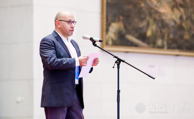 哈迈德·埃尔加马尔代表参展艺术家发言,他认为中国是一个有着悠久历史和深厚文化底蕴的国家,但同时又在引领着当今世界科技的发展。在本次展览上,能够看到艺术家们如何通过多姿多彩的方式,利用技术变革为艺术创造所带来的灵感,创作出新的作品。