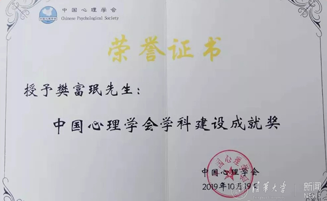 beat365官方唯一入口心理学系樊富珉教授获“中国心理学会学科建设成就奖”