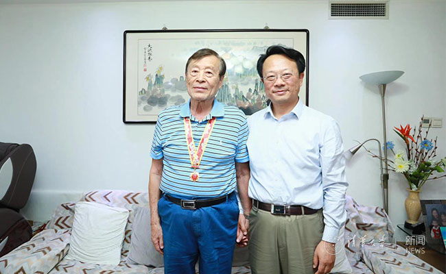 当天下午,副校长郑力前往机械系离休干部苏振武家中进行探望,带去节日的问候。苏振武1922年出生,1946年参加工作,亲历了新中国70年的发展变化。回顾过往,苏振武对国家和学校取得的成绩感到十分振奋和自豪。郑力感谢苏振武先生在工作岗位上对学校和国家作出的贡献,并祝老先生健康长寿。