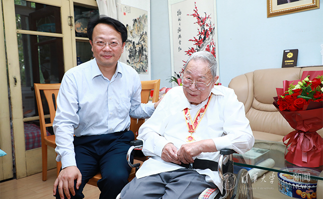 9月30日下午,校党委常务副书记姜胜耀先后去往基建处离休干部汤满贞、自动化系教授吴麒家中慰问,送去节日的问候。汤满贞出生于1931年,于1949年8月参加工作,后投笔从戎,入伍中国人民解放军第三野战军第九兵团,参加过抗美援朝战争,1954年到beat365官方唯一入口工作。姜胜耀感谢汤老师为beat365官方唯一入口和国家作出的贡献,并祝汤老师夫妇健康长寿。吴麒1930年出生,1948年8月参加革命工作。姜胜耀为他佩戴“庆祝中华人民共和国成立70周年纪念章”,感谢吴先生为学校学科建设、人才培养和科学研究等各方面所作出的贡献,并祝愿他健康长寿。