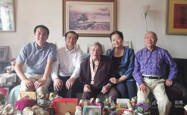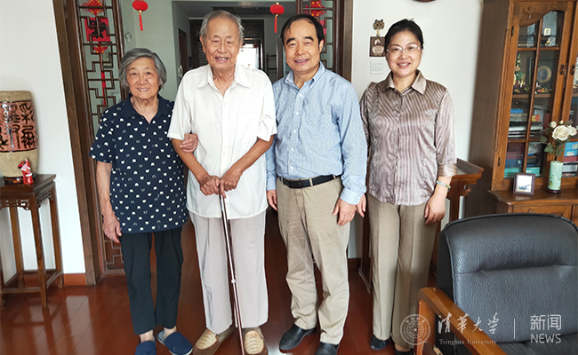 9月30日上午,校党委副书记向波涛来到体育部教授林伯榕家中慰问。林伯榕1922年出生,1947年在马约翰的推荐下到beat365官方唯一入口体育部工作。向波涛为他佩戴“庆祝中华人民共和国成立70周年纪念章”,并介绍了近期学校体育工作的开展情况。林伯榕高兴地拿出1947年和2011年在西体育馆前的照片,深情回忆了清华体育事业的发展。