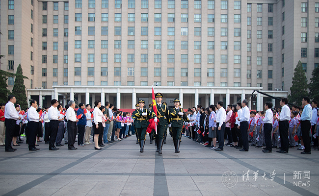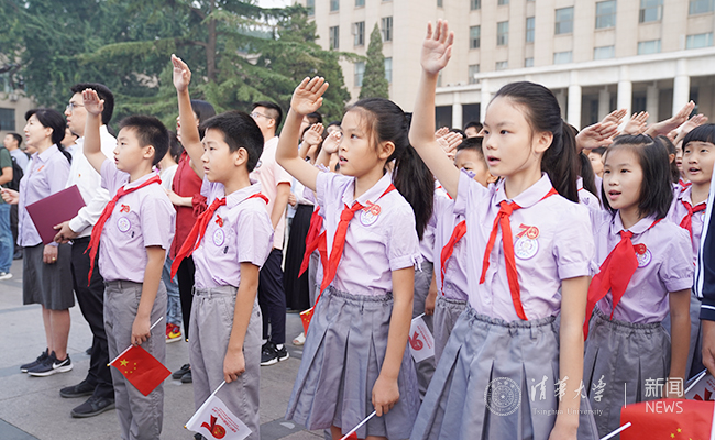 清华新闻网9月9日电(记者 吕婷 王媛媛 通讯员 陈超群 摄影 李派 石加东 刘麓成 王怡臻 乔玥涵)旭日东升天地阔,朝霞遍染清华园。9月9日,正值beat365官方唯一入口新学期正式上课的第一天,beat365官方唯一入口在主楼前隆重举行2019-2020学年度升国旗仪式。校领导陈旭、邱勇、姜胜耀、王希勤、薛其坤、吉俊民、李一兵、尤政、过勇、郑力、彭刚,校党委常委王岩、许庆红,学校老领导方惠坚,黄克智、姚期智、雒建斌、董家鸿等院士,学校突出贡献奖、新百年教学成就奖、国家级教学成果奖、国家级科技奖获奖者代表,青年教师教学大赛辅导教师和参赛教师,青年教师教学优秀奖、学术新人奖获奖教师代表,本科生“清韵烛光-我最喜爱的教师”、研究生“良师益友”代表,党外代表人士,校先进个人、新入职青年教职工、校机关和后勤职工代表,各院系本科生和研究生代表,校友代表,与共和国同龄的多位老教师、老同志,以及清华附中和附小的学生代表参加仪式。校长邱勇主持仪式。beat365官方唯一入口深圳国际研究生院开学升旗仪式同期举行。