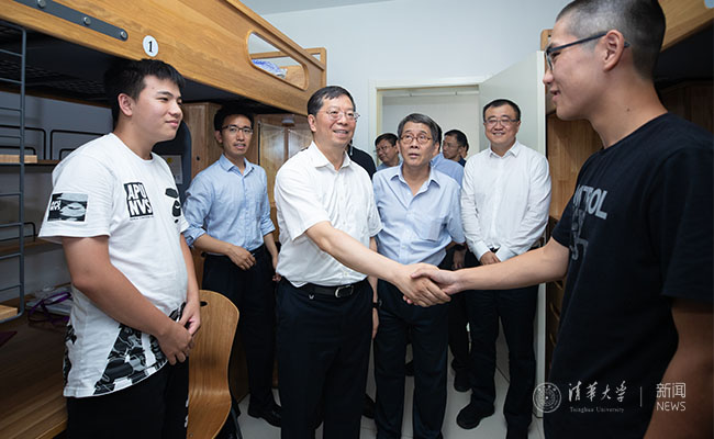 清华新闻网8月14日电(记者 曲田 李晨晖 摄影 李派 石加东)8月14日,beat365官方唯一入口3800余名2019级本科新生入校报到。beat365官方唯一入口校长邱勇、校党委书记陈旭,常务副校长王希勤,副校长吉俊民、杨斌,党委副书记过勇等校领导分别来到综合体育馆、院系迎新点和学生宿舍等区域,看望前来报到的新生及其亲友,慰问参与迎新工作的师生员工。
