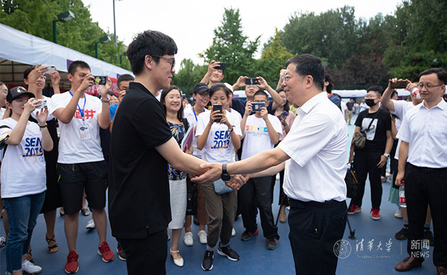 在经济、金融与管理类迎新点,世界围棋史上最年轻的“七冠王”柯洁正在办理报到手续,邱勇与他亲切握手,鼓励他在校期间好好学习,不断实现人生新的突破。