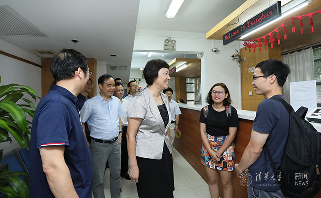 在紫荆19号楼,陈旭详细了解国际新生的报到情况。来自经管学院的阮芳英是一名越南籍新生,当被问及是否有家人陪同报到时,阮芳英自豪地说,“我一个人来学校报到,迫不及待要开始大学生活了。”陈旭说:“独立报到非常好,希望你尽快融入大学生活。清华欢迎你们的到来!”