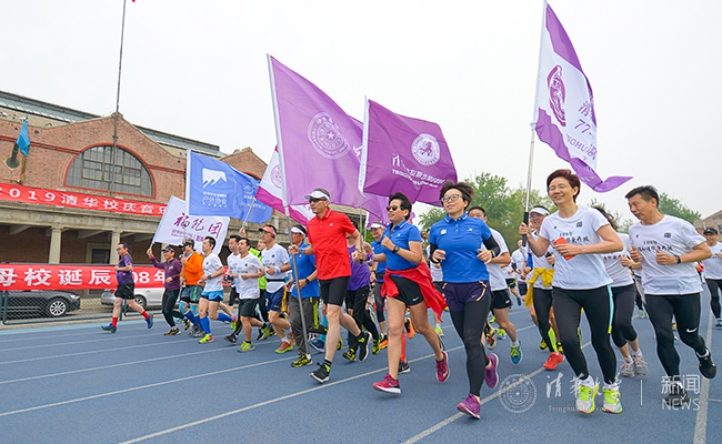 清华108岁,奔跑108圈。4月27日清晨,西大操场跃动着矫健的身姿,汇成一片欢乐的海洋。“为祖国健康工作五十年,幸福生活一百年!”400余名师生校友意气风发,热情高涨,挥舞着写有校友毕业年份的大旗,用接力的形式,共同完成一场为时四个半小时、共计43.2公里的校庆长跑献礼。1979级计算机系校友黄晓辉在西操草坪上组织了一场音乐马拉松。《清华的丁香雨》《我们大学的歌》等由清华人创作的歌曲旋律悠扬,鼓舞跑友们加油前行。