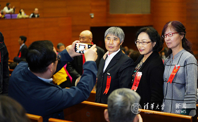 老照片,老物件,珍藏的时光乍现,激动的心情涌动。新清华学堂广场上,印满黑白老照片的展板成为一道靓丽的风景线。1984级每位同学当年的入学照清晰可见,毕业30周年的1984级校友纷纷上前仔细辨认,激动地喊出一位位老同学的名字。1984级机械系校友闻星火说:“看到老照片仿佛回到了过去。我们班29人今天回来24人,真的是大团圆!” 1984级环境学院校友周丹带上妻子和孩子一起来为母校庆生,“希望小孩来接受一下熏陶,以后也争取考清华!”周丹笑着说。