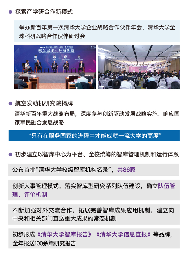 过去一年,在全面深化综合改革、加快“双一流”建设的关键节点上,清华进一步强调质量提升、内涵式发展,凝心聚力,保持定力,持续提升人才培养质量、学科建设质量和学校管理水平,各方面工作扎实推进,呈现出新气象、新面貌,展现了新作为。108周年校庆之际,校报《新清华》再次推出“图说清华又一年”校庆特稿,用信息可视化的方式呈现清华2018年重要工作进展和发展建设成绩,与广大师生校友共同祝福更加自信、更加开放的清华!