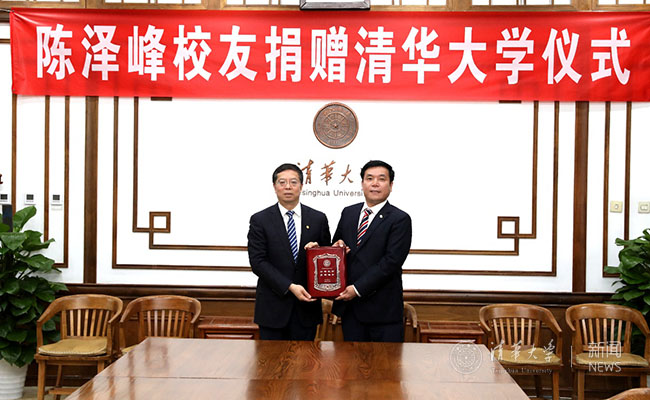 邱勇在致辞中表示,此次捐赠仪式有两个特殊含义:一是代表了清华校友对母校发展的大力支持,二是象征着清华108周年校庆收到了一份厚礼。陈泽峰校友是一位富有人文情怀和创新精神的企业家,校友的发展影响着母校的声誉,陈泽峰校友对母校的支持也将对清华的发展起到积极推动作用。