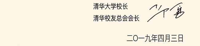 四月的校园,清华两辉映。美丽的校河蜿蜒流淌,千丝杨柳轻抚碧波;似锦的繁花竞相开放,姹紫嫣红浓淡相宜。迎来108岁生日的清华呈现出一派生机勃勃的景象。我谨代表学校向海内外广大校友和全体师生员工致以亲切的问候和良好的祝愿,向多年来关心支持我校发展的各界人士和朋友表示衷心的感谢!