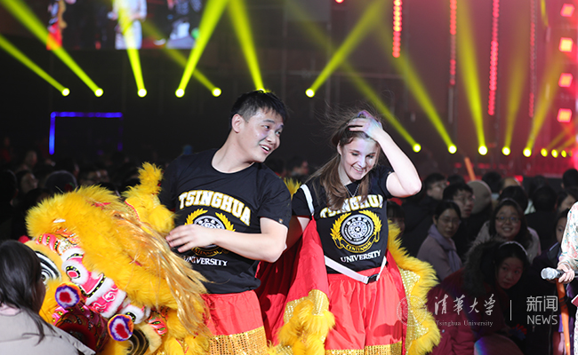 晚会现场首次采用场外直播连线技术,不仅采访了参与舞狮表演的国际学生和观看演出的饮食中心职工,还在校园各处设置场外采访区域,现场连线正在熬夜赶图的建筑学院学生以及坚守岗位的清华保安,通过一块屏幕传递清华温度,体现新年晚会场内和场外的融合;晚会还首次将游戏环节设置在观众区域,以击鼓传花和传送气球的方式,让全场3000余名观众共同分享辞旧迎新的喜悦,体现新年晚会台上和台下的融合。