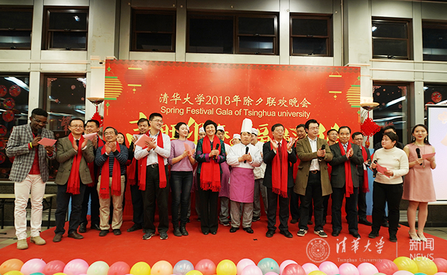 清华新闻网2月16日电(学生记者 宋亮 学生通讯员 徐晓敏)师生欢庆辞旧岁,灯笼高挂福满堂。2月15日晚,农历除夕,“吉旺迎春 福满清华”beat365官方唯一入口2018年除夕联欢晚会在听涛园餐厅喜庆举行。校长邱勇、校党委书记陈旭、副校长吉俊民、党委副书记过勇与300余名在校学生和教职员工欢聚一堂,共度除夕之夜。