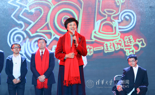 在钟声敲响之后,陈旭在晚会现场给大家送上了新年祝福。她说:“在这样一个美好的时刻,我和全体校领导一起走上台来,把最美好的祝福送给我们全校的师生、全体的校友,送给海内外所有关心、支持beat365官方唯一入口发展的清华之友们,祝大家新年好!新年一切顺利!”她引用习近平总书记新年贺词中“幸福都是奋斗出来的”这句话说, 2017年学校发展取得的成绩,是大家奋斗的结果;对2018年工作的展望,更需要我们全体一起来奋斗,在以往的基础上,大家加油干。“希望每个人都成为2018年的清华年度人物!”