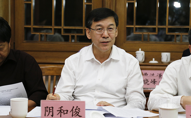 阴和俊在座谈会上讲话。 记者 张宇 摄