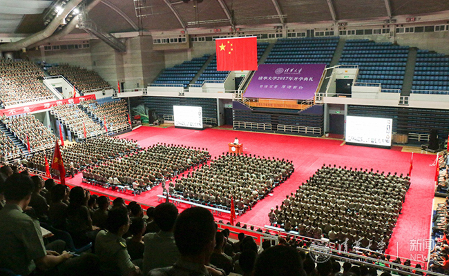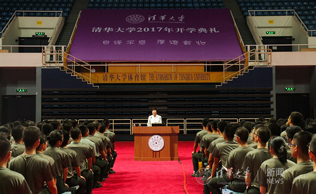 清华新闻网9月1日电 8月30日晚,2017级本科生第一讲成才报告在综合体育馆进行,校党委书记陈旭为3000多名新生讲授了题为“继承传统,做新一代清华人”的大学第一课。