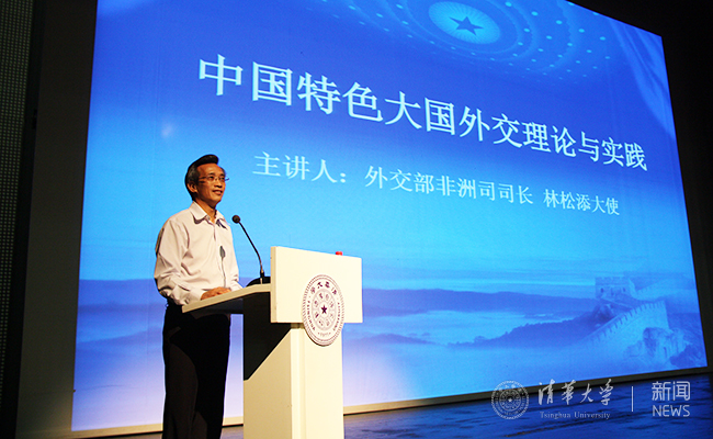 林松添在报告中梳理了近年来国际形势的主要发展脉络,通过详实的数据和案例解读了当前世界格局的基本特征和发展趋势。林松添从中国特色大国外交的理念、特征等方面,结合自己亲历的外交事例,介绍了党的十八大以来,中国特色大国外交理论和实践取得的重要成就。他勉励在座的清华学子支持祖国外交,加盟祖国外交,为实现中华民族的伟大复兴贡献力量。