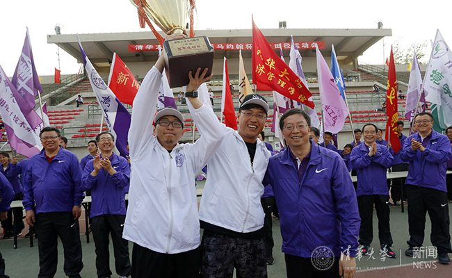 校领导带队绕场跑步 全场热呼“清华,生日快乐!”
