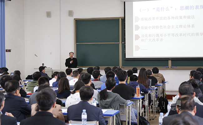 冯务中副教授引导“‘质疑改革开放’思潮之辨析”讨论。记者 张宇 摄