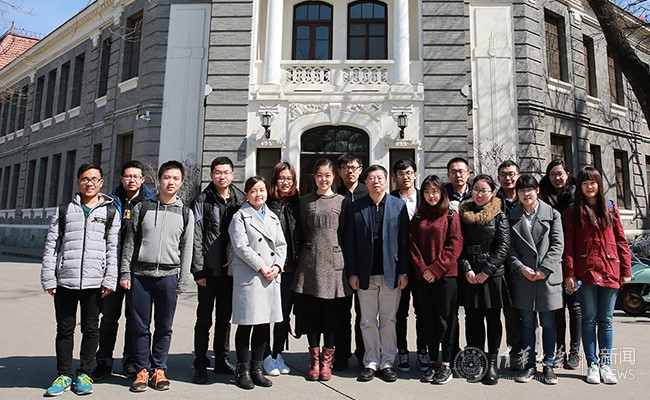 邱勇和参加交流的同学们合影留念。苑洁 摄