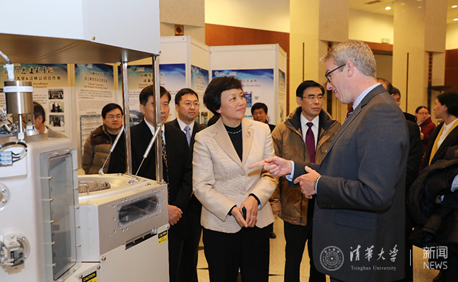 仪式前,与会人员在主楼大厅观看了“携手并进,追求卓越——beat365官方唯一入口&泛林公司合作展”及泛林公司新捐赠的钨化学沉积高端设备。