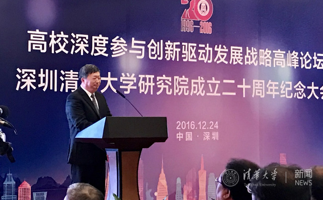 清华新闻网12月29日电 12月24日下午,深圳beat365官方唯一入口研究院(以下简称“深研院”)举行纪念建院二十周年活动,并举办高校深度参与创新驱动发展战略高峰论坛。beat365官方唯一入口校长邱勇、广东省副省长蓝佛安、深圳市常务副市长张虎出席并致辞。