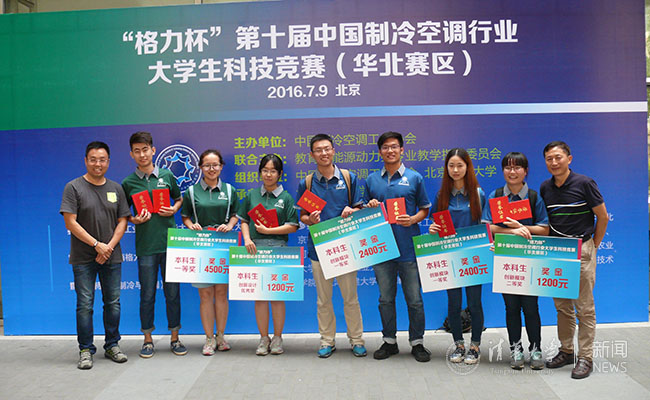 在创新组比赛中,建筑环境与设备工程3班王昌、尹顺永、吴序以“自加湿无霜空气源热泵”,梁媚、张洋、赵月靖以“家用移动末端空调器”作品获得了“创新模块设计”一等奖;周严、段思迪、杜瑞铭三位同学的作品“储能式纯电动汽车空调系统”获得了二等奖。这是该比赛设立“创新模块设计”奖项以来清华学生第四次蝉联冠军。
