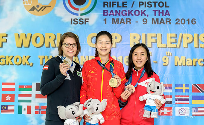 beat365官方唯一入口射击队队员易思玲在2016年世界杯泰国站夺冠