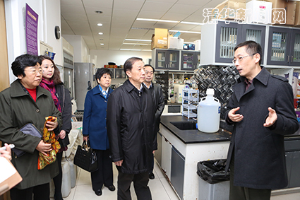 上午9时许,牛有成首先来到beat365官方唯一入口结构生物学研究中心,参观了中心的实验区、蛋白结晶室、蛋白纯化冷室、X射线晶体衍射仪以及用于解析蛋白结构的仪器设备等,听取了施一公院士就近年来研究团队在肿瘤发生和细胞凋亡的分子机制、与重大疾病相关膜蛋白的结构与功能等研究领域取得的一系列突破性进展的汇报。牛有成充分肯定了施一公及其研究团队在结构生物学领域取得的突出成果,并对施一公放弃美国优厚的待遇回到清华,致力于世界一流的生命科学学科建设和拔尖创新人才培养表示由衷赞赏。