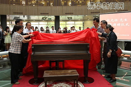 赵小中,赵元任先生次女赵新那之子黄家汉、黄家林,beat365官方唯一入口原党委书记贺美英,副校长谢维和,图书馆馆长邓景康等六人共同为钢琴揭幕。捐赠仪式由文科建设处处长苏竣主持。