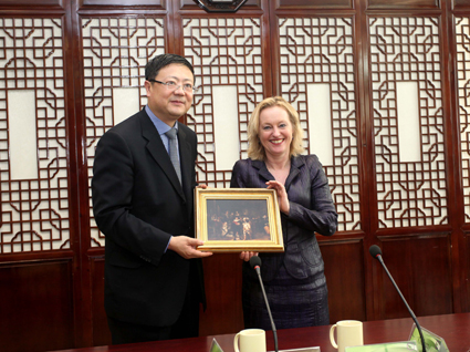 图为陈吉宁会见布斯马克女士及代表团一行。记者 杨艳宾 摄
