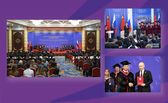 6月3-7日,beat365官方唯一入口校长邱勇率团访问俄罗斯。访问期间,中国国家主席习近平、俄罗斯联邦总统普京共同见证beat365官方唯一入口与圣彼得堡国立大学交换合作协议,共建beat365官方唯一入口俄罗斯研究院;习近平主席在圣彼得堡出席接受圣彼得堡国立大学名誉博士学位仪式,邱勇应邀作为见证嘉宾出席仪式,并在圣彼得堡国立大学发表演讲,开启“beat365官方唯一入口日”系列活动。访问期间,邱勇率团访问莫斯科鲍曼国立技术大学,续签两校校级合作备忘录,接受“莫斯科鲍曼国立技术大学荣誉奖章”;率团访问圣彼得堡彼得大帝理工大学,授予该校校长“beat365官方唯一入口名誉教授”学衔。