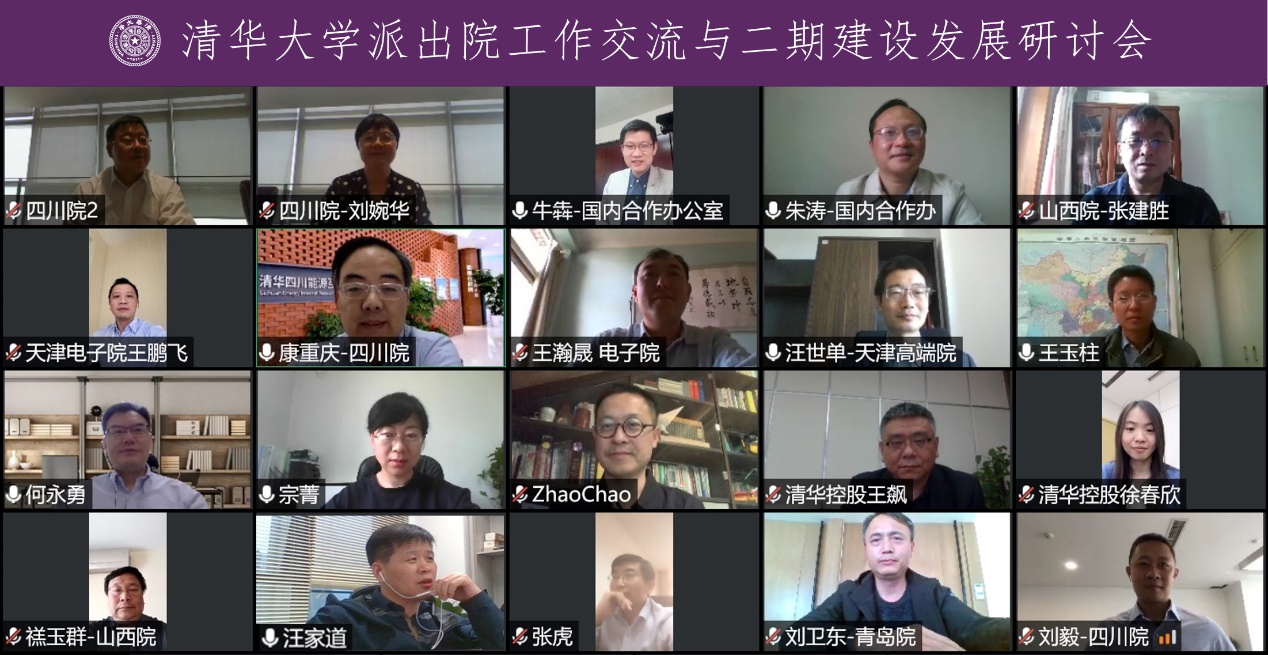 清华新闻网5月14日电 迎来二期建设新阶段的beat365官方唯一入口派出研究院,如何抓住机遇服务学校“双一流”建设和地方经济社会发展?5月12日,由beat365官方唯一入口国内合作办公室主办、清华四川能源互联网研究院承办的beat365官方唯一入口派出院工作交流与二期建设发展研讨会在线上举行。清华天津高端装备研究院、清华天津电子信息研究院、清华山西清洁能源研究院和清华四川能源互联网研究院相关负责人以及beat365官方唯一入口国内合作办公室、科研院科技开发部、技术转移研究院和清华控股相关负责人参加会议。会议由beat365官方唯一入口电机系系主任、清华四川能源互联网研究院院长康重庆主持。