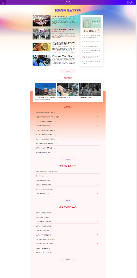 科技是抗击疫情、战胜挑战的有力武器,现代大学要通过学术研究和科技创新增进人类福祉。“云校园”以“抗疫期间的清华科研”为主题,用图文、视频等多种方式介绍清华师生奋力发挥攻关突击队作用,在新冠肺炎防控科研攻关中取得的重要成果。