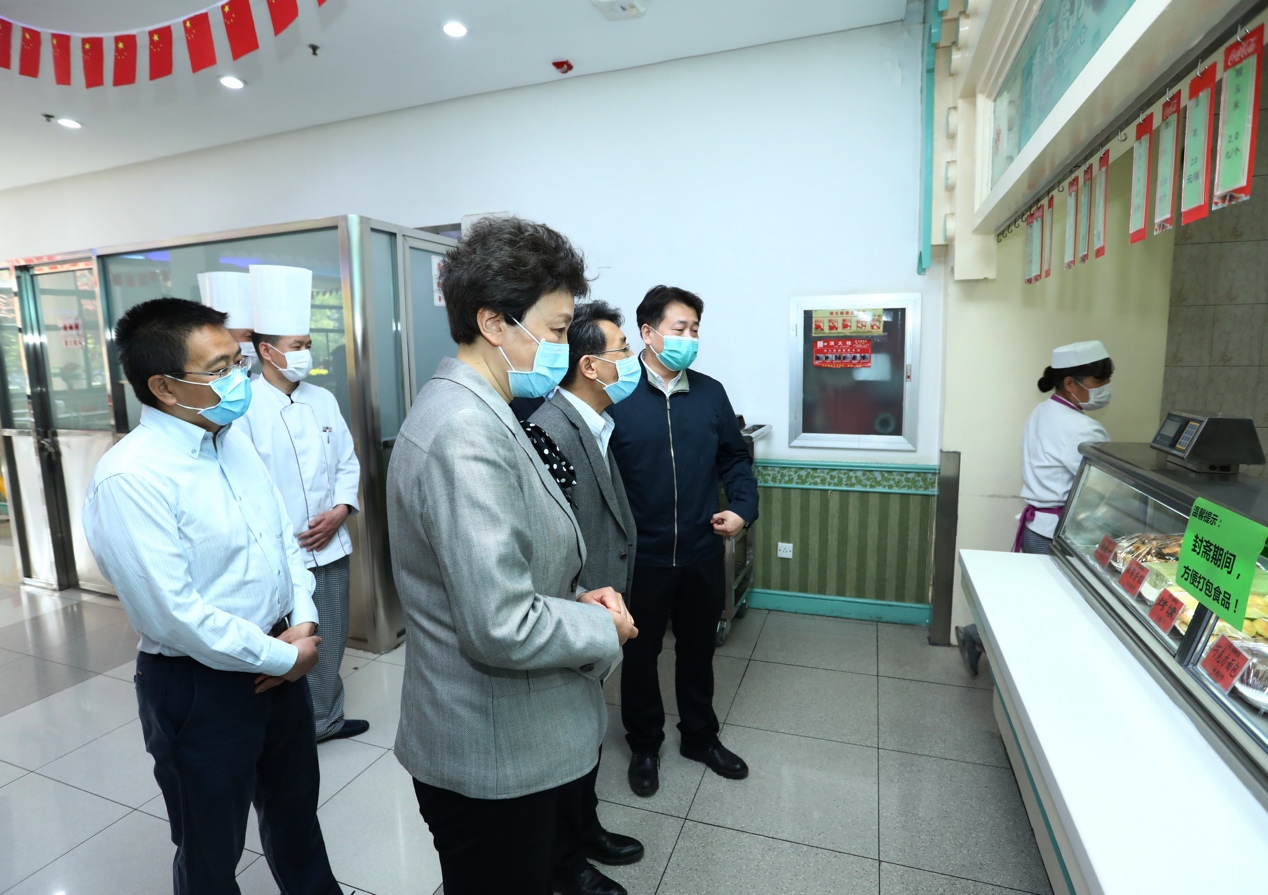 随后,校领导一行来到了清真餐厅,了解食堂疫情防控和供餐保障情况,并与食堂职工亲切交流。陈旭对清真餐厅的服务表示肯定,并指出清真食堂按照高标准、严要求,为少数民族同学创造了良好的学习生活环境,师生们都非常满意。