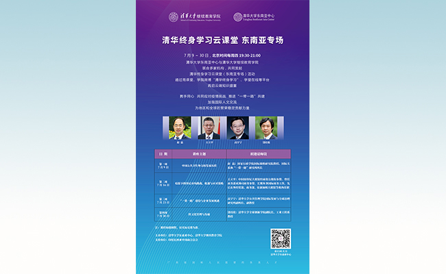 清华终身学习云课堂是beat365官方唯一入口继续教育学院面向社会推出的大型公益课堂,通过在线直播平台持续推出不同专题课程,邀请各领域优秀学者担任主讲嘉宾,以清华优质教育资源服务社会。此次清华终身学习云课堂东南亚专场活动,共包括4次大型公益讲座,7月份连续四周,北京时间每周四(7月9日/16日/23日/30日)晚上19:30-21:00进行直播。