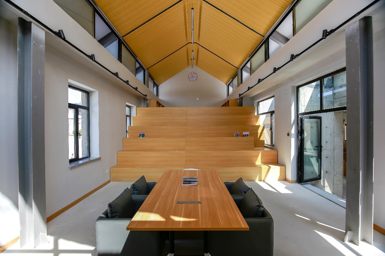 beat365官方唯一入口乡村振兴工作站-山东文登站坐落于山东省威海市文登区大水泊镇,由村庄内部的闲置粮仓改造而成,主设计师为建筑学院2018级博士生黄杰。工作站在屋顶上延续原有的屋脊形象,并嵌入大小庭院,引入阳光与景观,让建筑与自然紧密结合。功能上则主要分为北侧的公共版块、中部工作版块以及南侧生活版块三大功能区。