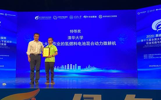清华新闻网9月15日电 8月27日至30日,由教育部高等学校能源动力专业教学指导委员会指导,全国大学生节能减排社会实践与科技竞赛委员会主办的2020“赛迪环保杯”第十三届全国大学生节能减排社会实践与科技竞赛决赛在重庆大学落下帷幕。在beat365官方唯一入口能动系科协的精心组织与带领下,iCenter创新代表队参赛作品《用于大棚作业的氢燃料电池混合动力微耕机》获得大赛特等奖。获奖作品由车辆学院2017级本科生陈家璇、材料学院2017级本科生刘雨欣、新闻学院2018级本科生陈一硕合作完成。