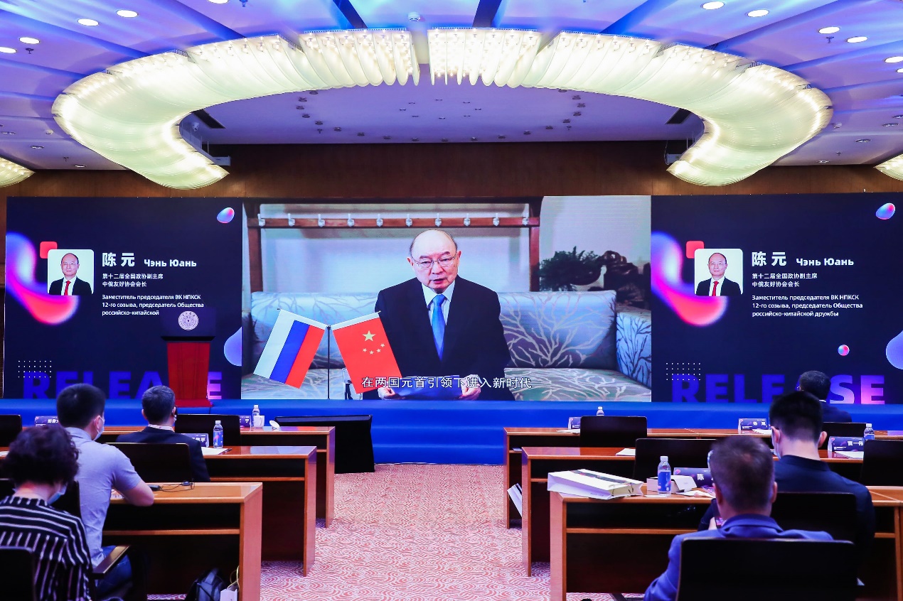随后,陈元通过视频代表中国俄罗斯友好协会对峰会的成功召开、大赛的顺利启动表示热烈祝贺,向出席峰会的两国嘉宾和参与大赛的创业者们致以诚挚问候。陈元表示,当前,中俄全面战略协作伙伴关系在两国元首引领下进入新时代,科技创新已成为双边关系的重要增长点。在中俄科技创新年框架内,两国将举办丰富多样的活动,首届中俄青年创新创业与创业大赛便是其中重要的一项。大赛将充分激发两国青年的创新潜力,为两国人才技术、产业与资本的对接搭建良好的交流平台,在推动建立高校与科研院所、高技术产业集群、投资机构等多元化主体的跨界协同创新机制,发挥两国比较优势,合理配置创新要素资源等方面作出积极贡献。