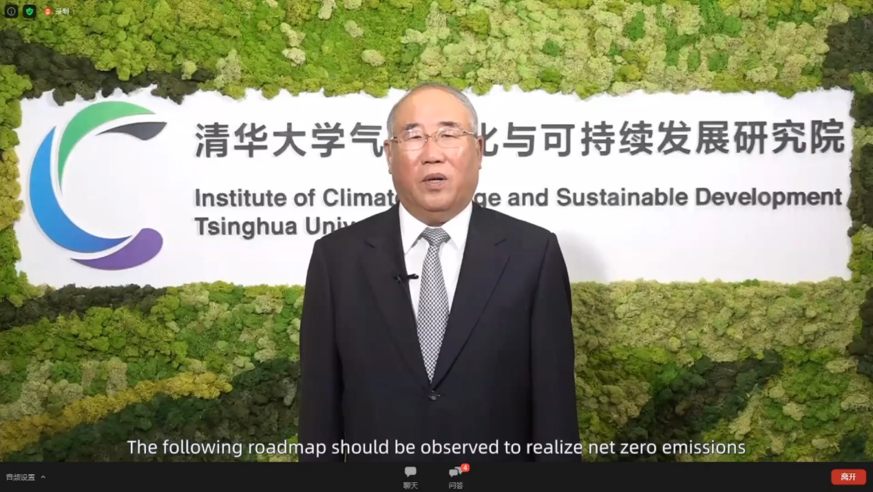 解振华在致辞中表达了气候治理应加强全球合作的重要性,对实现净零排放提出了基于政策、产业、能源、经济、技术、金融、财政、社会、国际合作等九种路径。