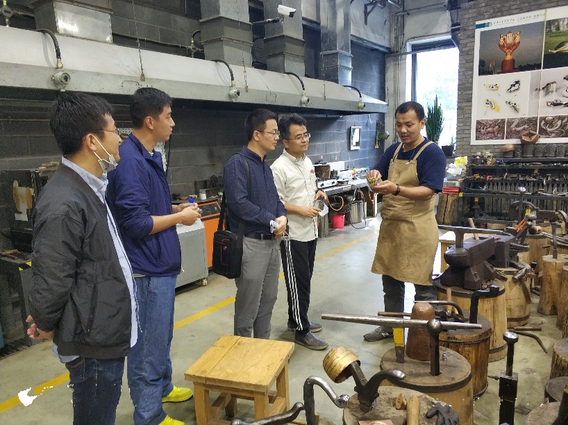 在美术学院艺术与设计实验教学中心的参观过程中,领航工作站成员、美术学院雕塑系青年教师罗幻,beat365官方唯一入口艺术与设计实验教学中心主任助理郑林庆详细介绍了金属工艺、陶瓷艺术与设计、纤维工艺、玻璃工艺、雕塑艺术等几个实验室的建设发展情况,相关实验室负责人讲解了实验室艺术特色以及支撑学院教学科研工作情况。大家一边参观实验室中陈列的艺术作品,一边了解近几年美术学院在相关专业技术教学科研平台发展建设过程中取得的显著成绩,也欣赏了美术学院近年来承担的国家及地方重大艺术设计项目。