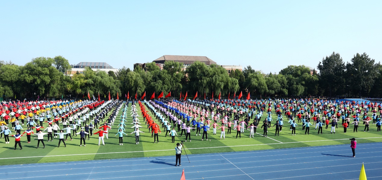 一面面红旗迎风招展,国旗班,红旗队,院系、部处和直附属单位等59个分工会的教职工依次步入操场,他们步伐稳健,精神抖擞,充满自信与活力。1000余名教职工参与了开幕式的广播操表演,以整齐划一、刚劲有力的动作展现了良好的精神面貌,成为蓝天下一道亮丽的风景线。航天航空学院兰旭东、体育部邢玮分别代表运动员、裁判员宣誓。