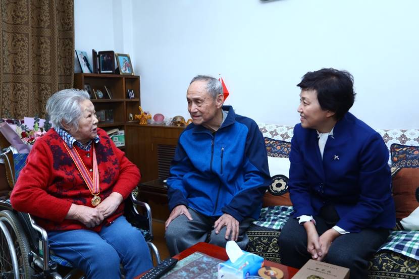 10月20日,副校长郑力来到电子系离休教师姚季家中慰问。郑力为姚季佩戴纪念章,并对她当年舍生忘死、保家卫国的大无畏精神致以崇高敬意。姚季说,抗美援朝开始后,她响应国家号召加入部队,于1952年夏天离开祖国奔赴朝鲜战场从事雷达设备维护相关工作。回到清华工作后,她特别注重锻炼身体,今年92岁的她是学校老年游泳队目前年龄最大的成员,保持着每周2-3次游泳的锻炼习惯。郑力为姚季的健康状况感到欣慰,嘱咐她保重身体,坚持锻炼。